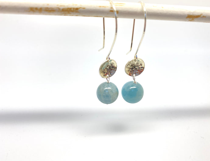 Hammered Convex Drop Earrings with Aquamarine - Sterling Silver