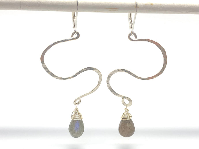 Hammered Gold Snake Earrings with Green Mystic Quartz & Labradorite