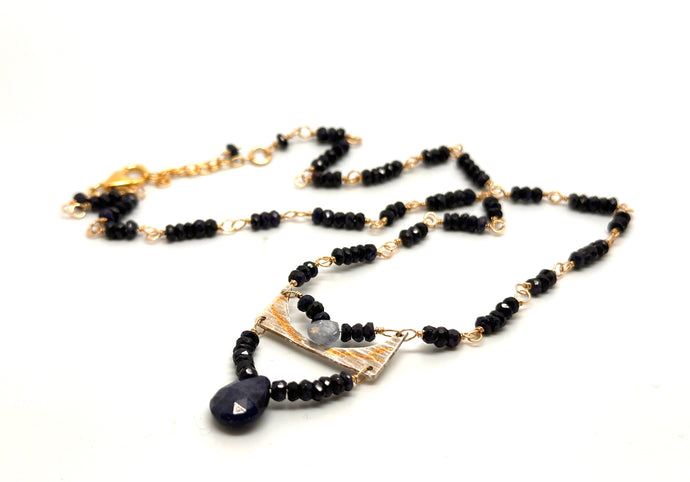 • Gold and Silver Keum Boo Ginkgo Leaf Drop Necklace with Hessonite Garnet Beads