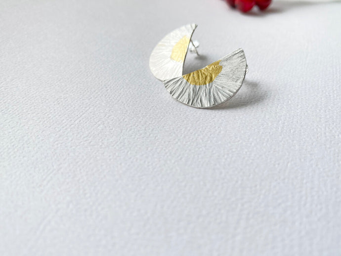 • Half Moon Gold and Silver Keum Boo Post Earrings