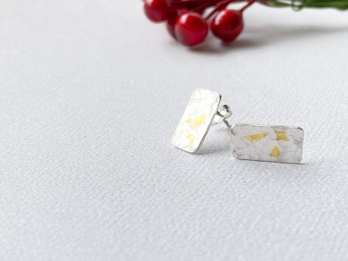 • Gold and Silver Keum Boo Small Rectangle Stud Earrings