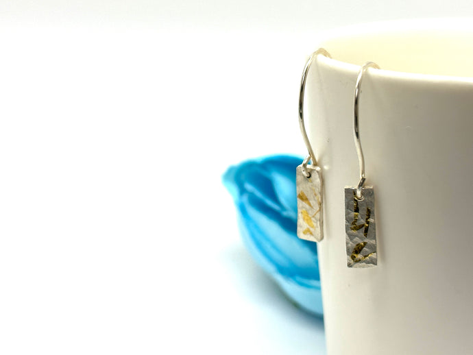 • Gold and Silver Keum Boo Small Rectangle Drop Earrings
