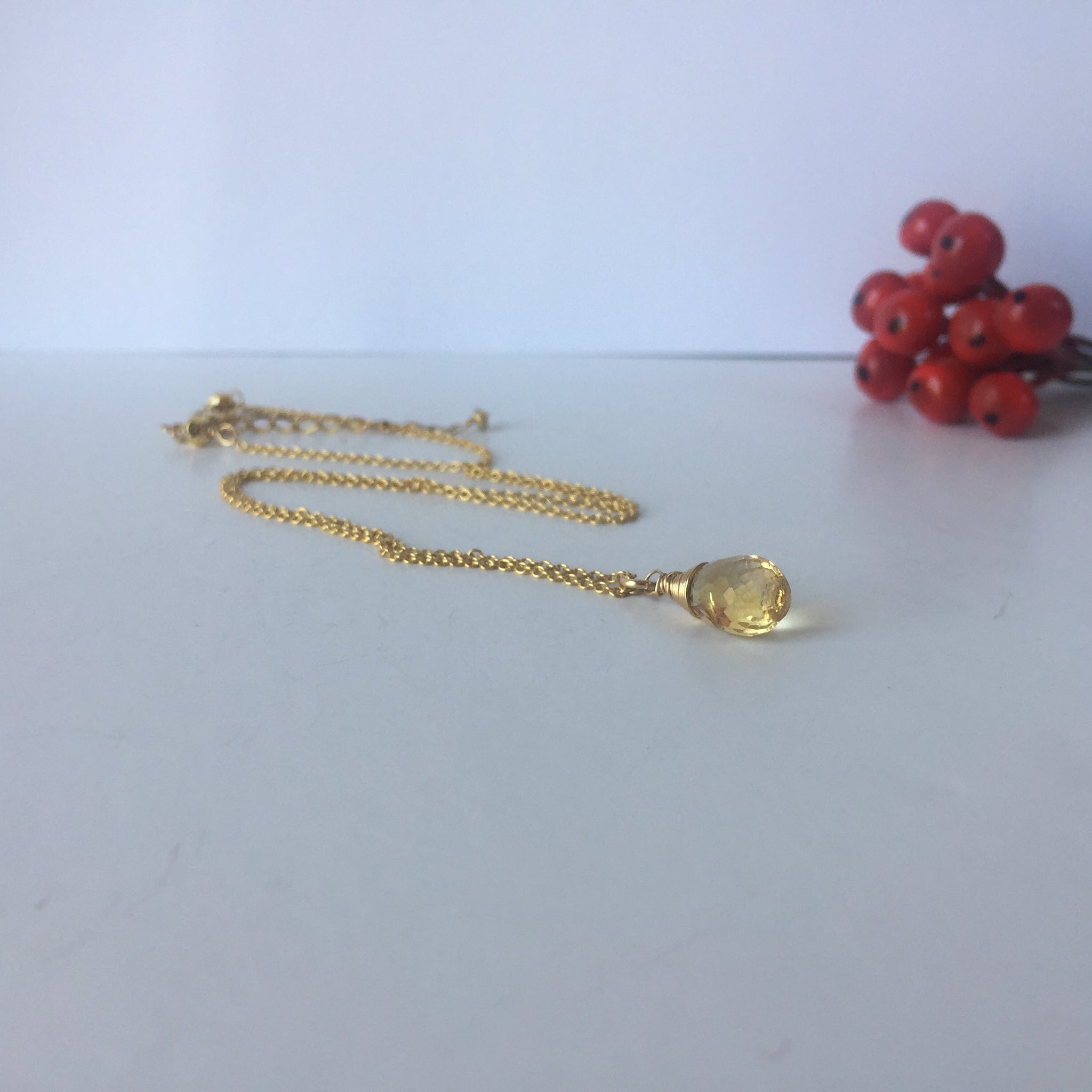 This everyday necklace is made by wire wrapped high quality faceted gemstones to 14kt Gold Filled fine cable chain.