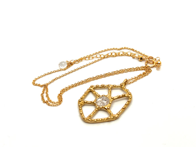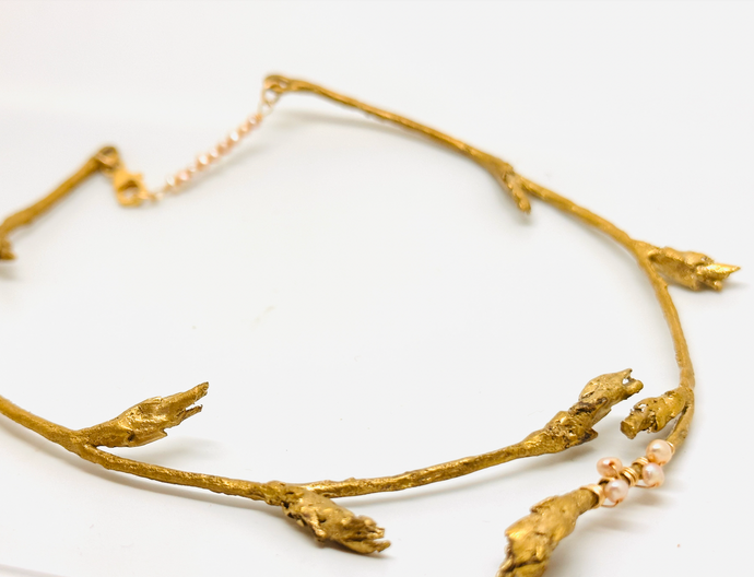Gold and Silver Keum Boo Ginkgo Leaf Drop Necklace with Hessonite Garnet Beads