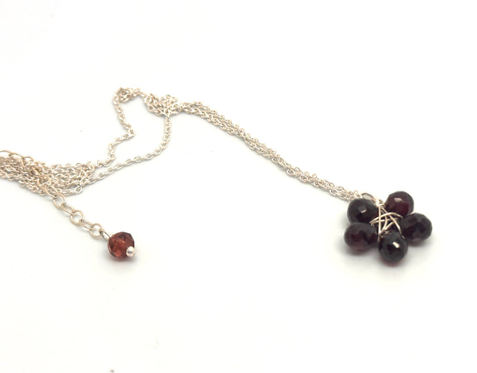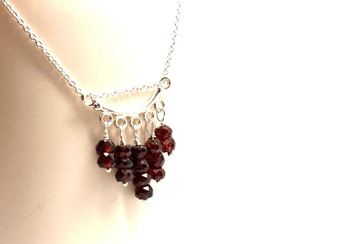 Hammered Diamond Sterling Silver Necklace with Garnet