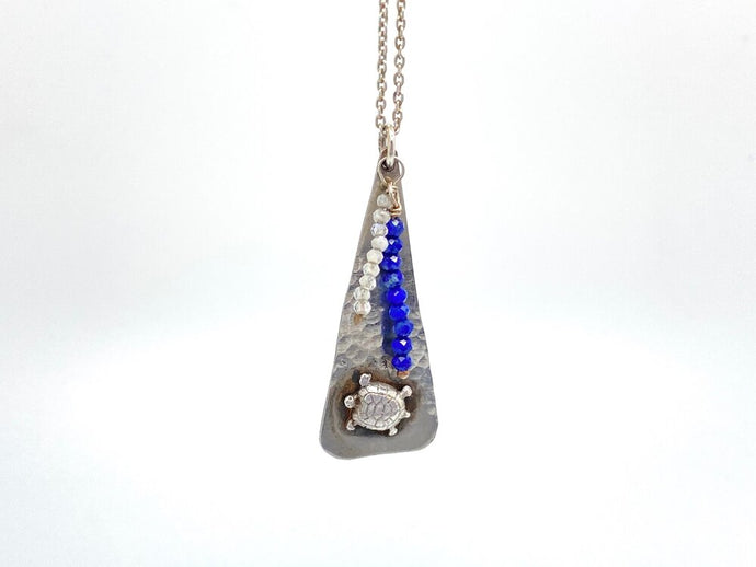 Caretta Caretta Turtle Necklace with Lapis and Moonstone