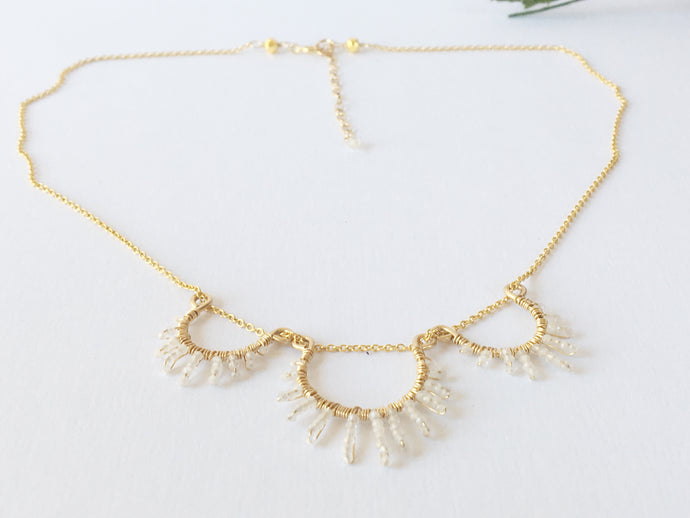 14kt Gold Filled Triple Horse Shoe Necklace with Wire Wrapped Moonstones