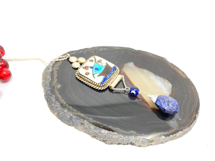 Caretta Caretta Turtle Necklace with Lapis and Moonstone