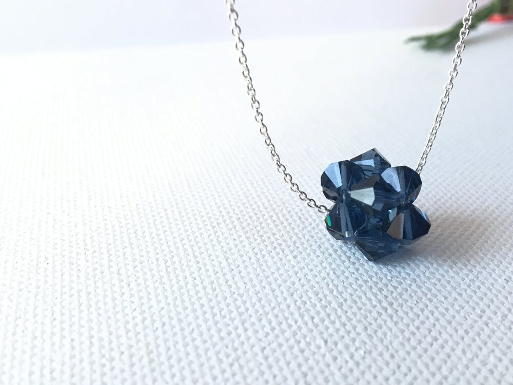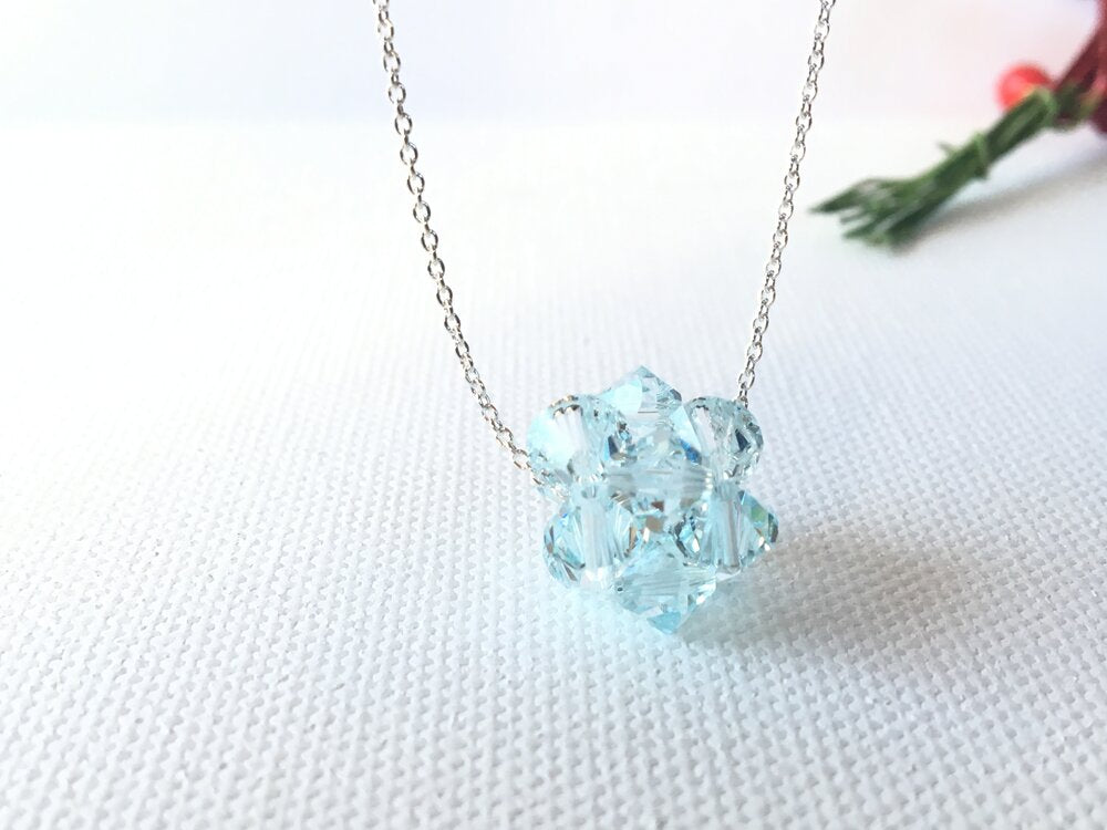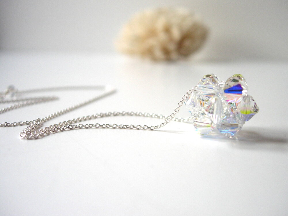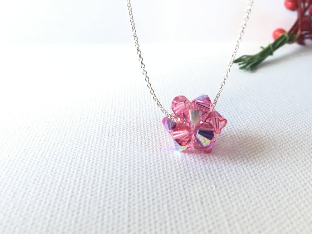 Weaved 6mm bicone Crystals to form this ball shape necklace, finished with Sterling Silver fine Cable Chain.