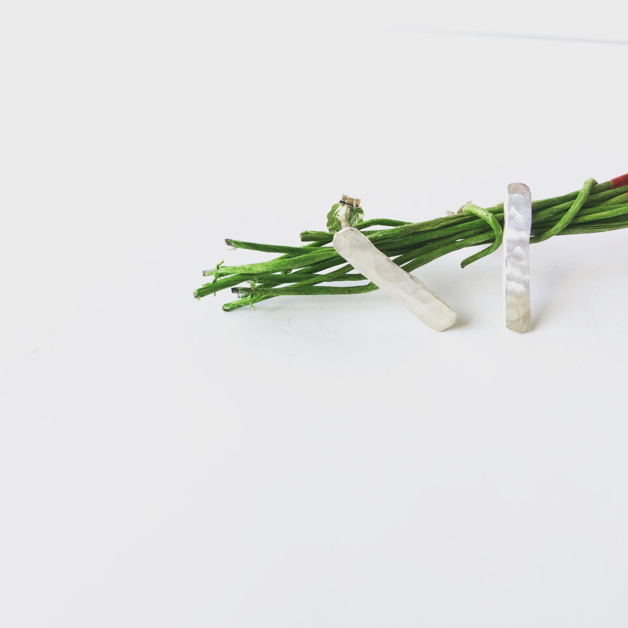 Used hammering and soldering to make these petite sterling silver stud earrings. They are about 1/2" in length. All my products come in a beautiful box ready for your gift giving times.