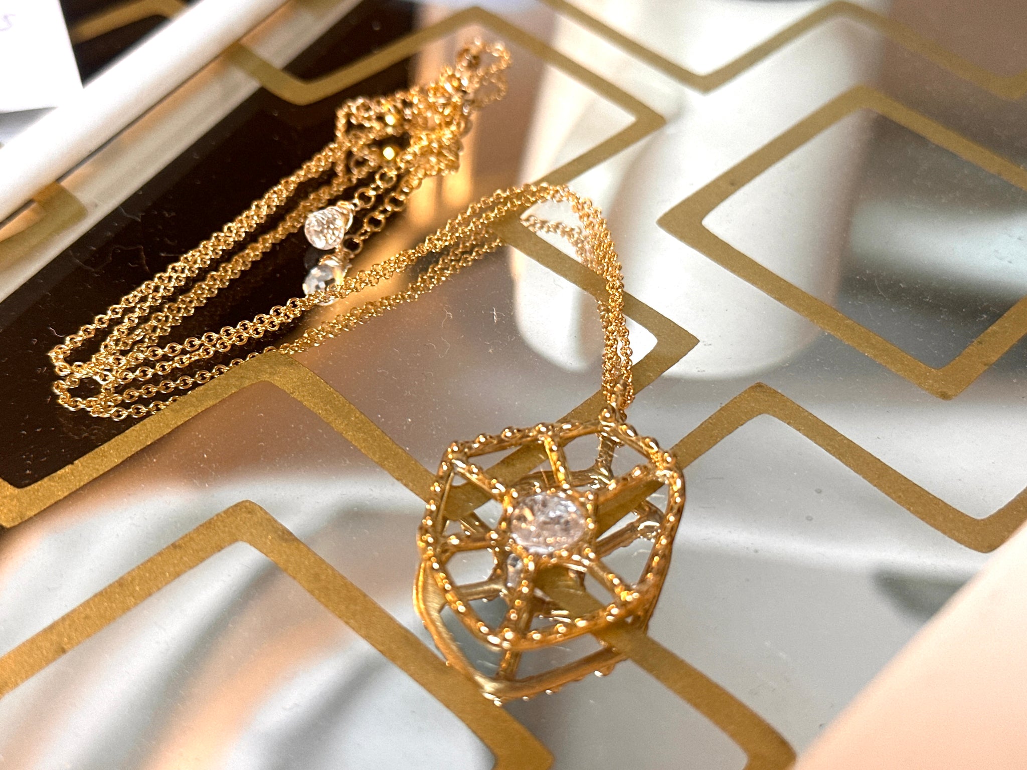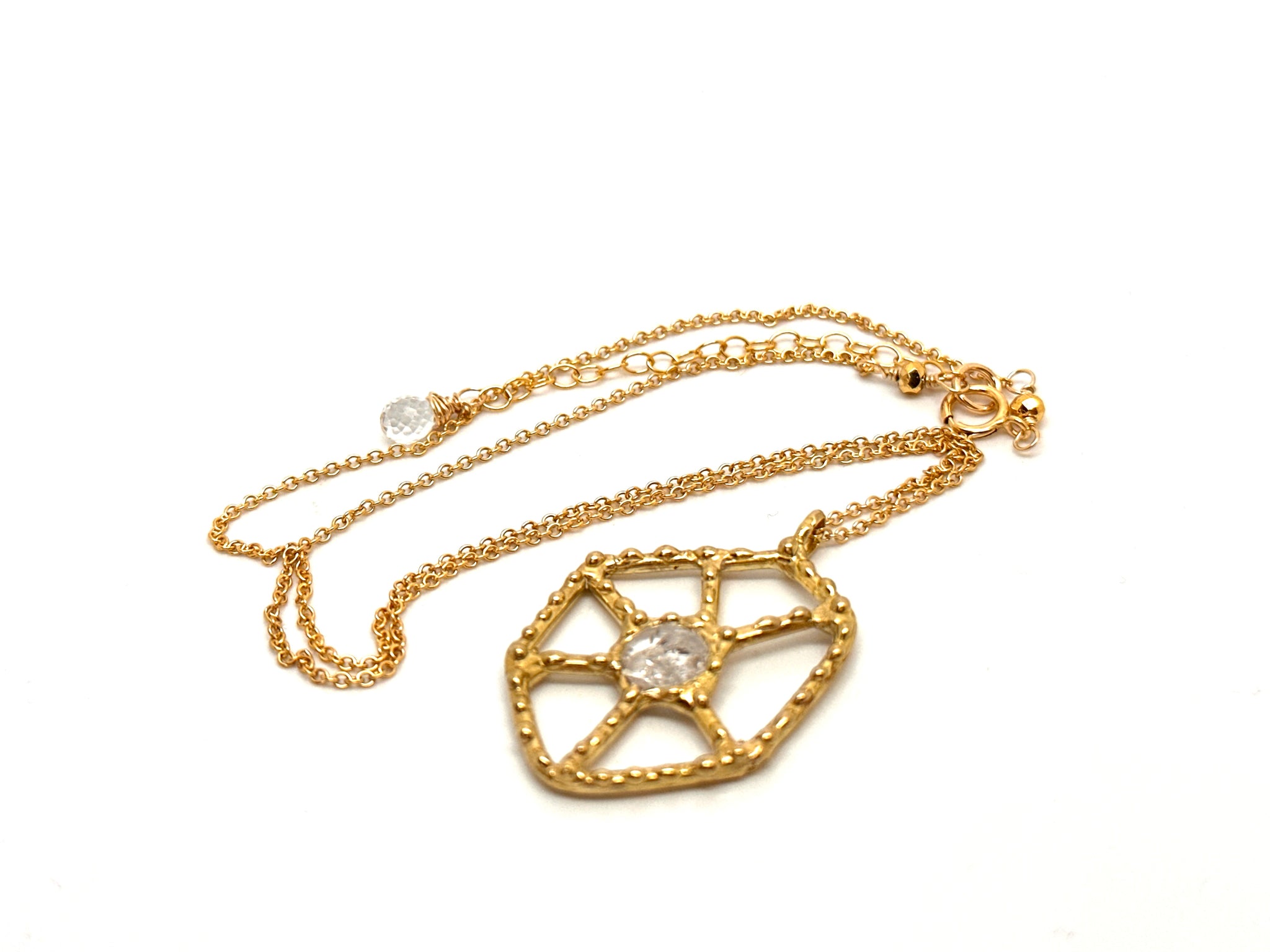 Crafted through the meticulous lost wax casting method, this spider web necklace features a clear quartz centerpiece delicately set in warm brass. The intricate design captures the ethereal beauty of a spider's web, showcasing the meticulous attention to detail in each strand. A stunning blend of artistry and nature, this unique piece embodies the timeless elegance of clear quartz and the craftsmanship of lost wax casting.