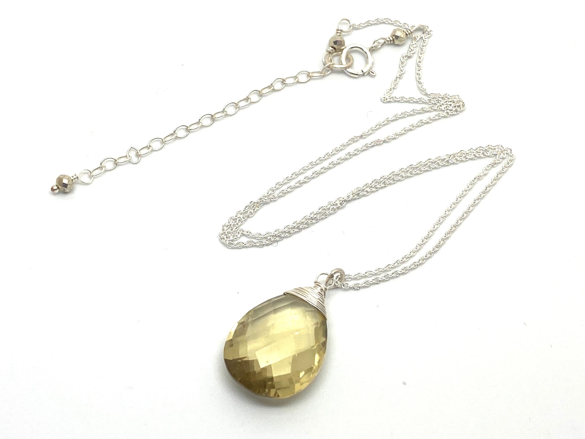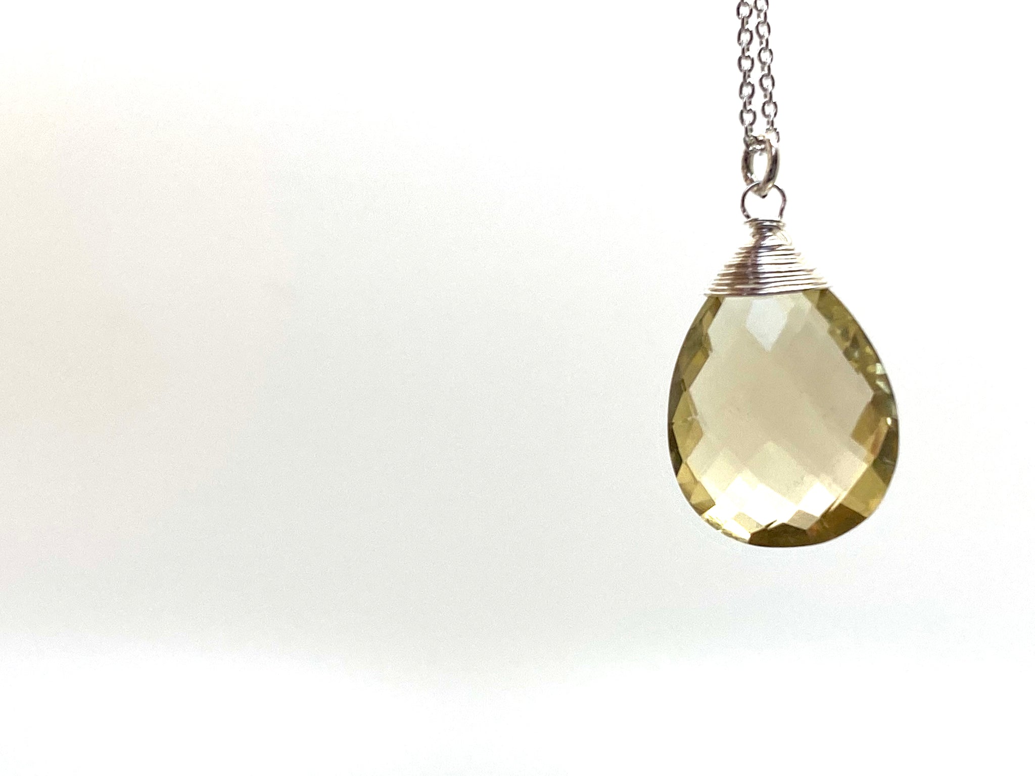 These large faceted lemon drop pendant is made by wire wrapping techniques in 14kt Gold Filled or Sterling Silver wire and fine cable chain . The lemon drops that I used to make this statement necklace are dazzling. This will be great addition to your necklaces collection.