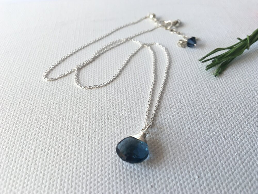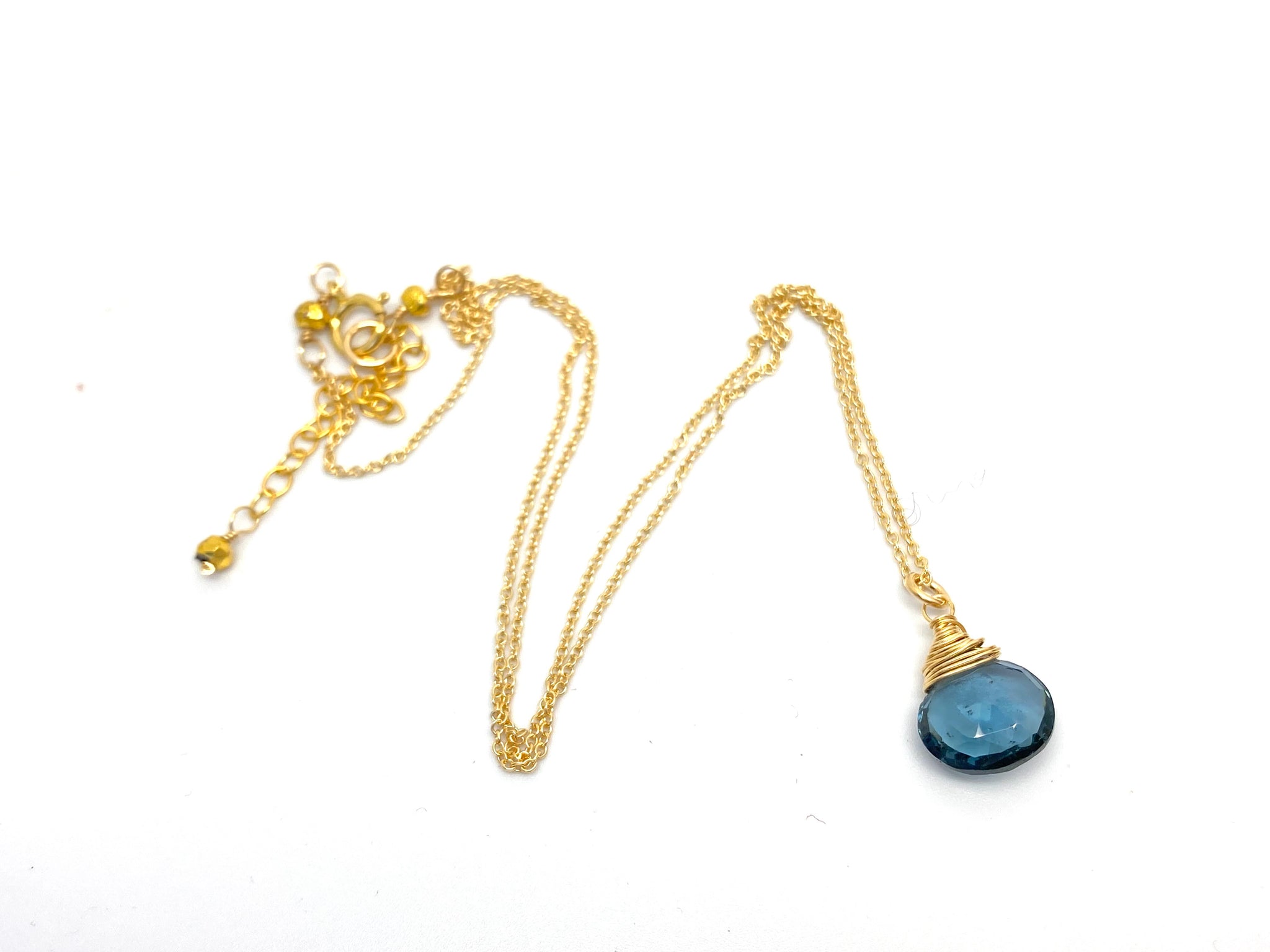 This elegant necklace can be yours . Used Faceted London Blue Quartz Briolettes wire wrapped in either sterling silver or 14kt gold Filled metal...