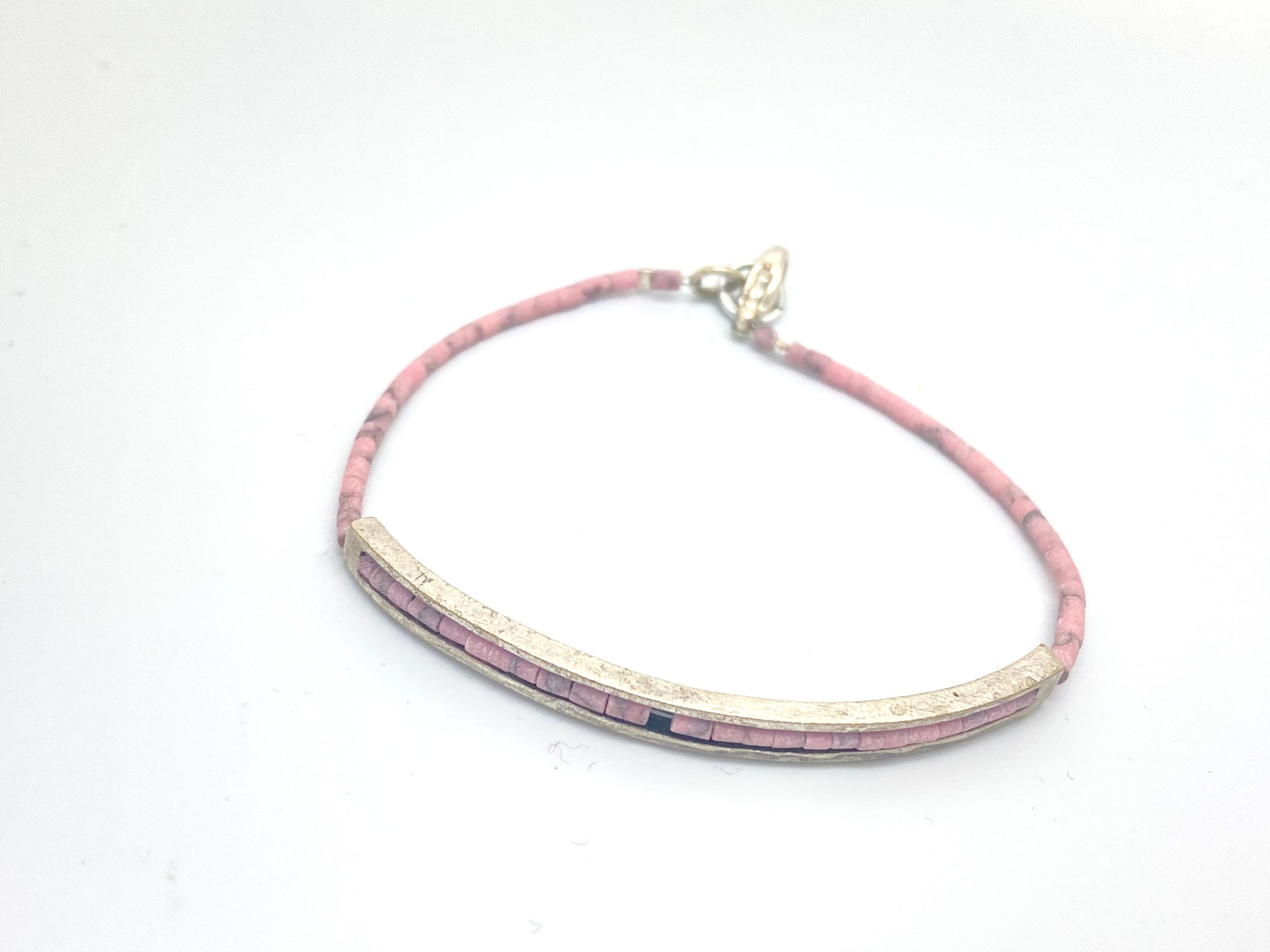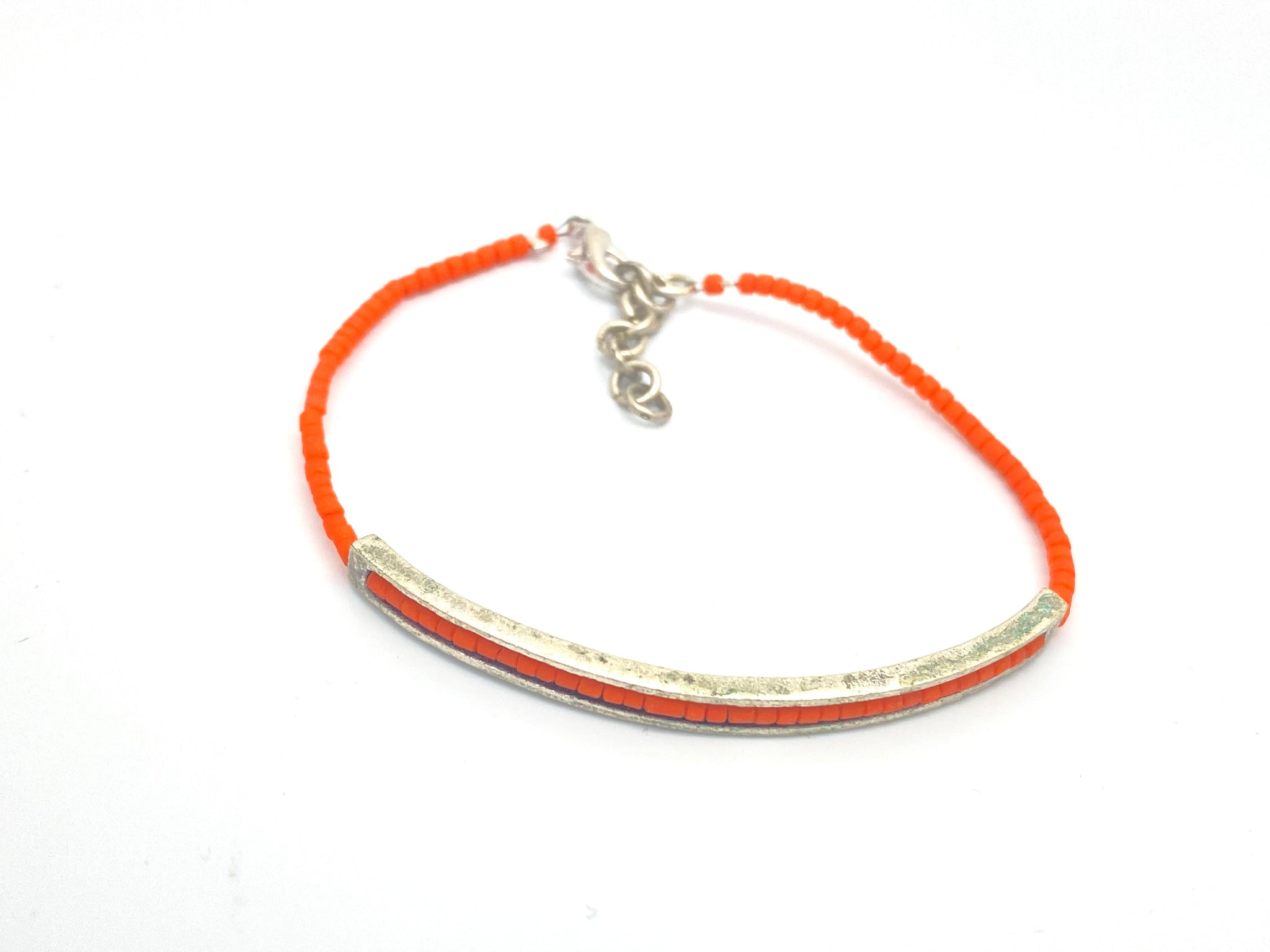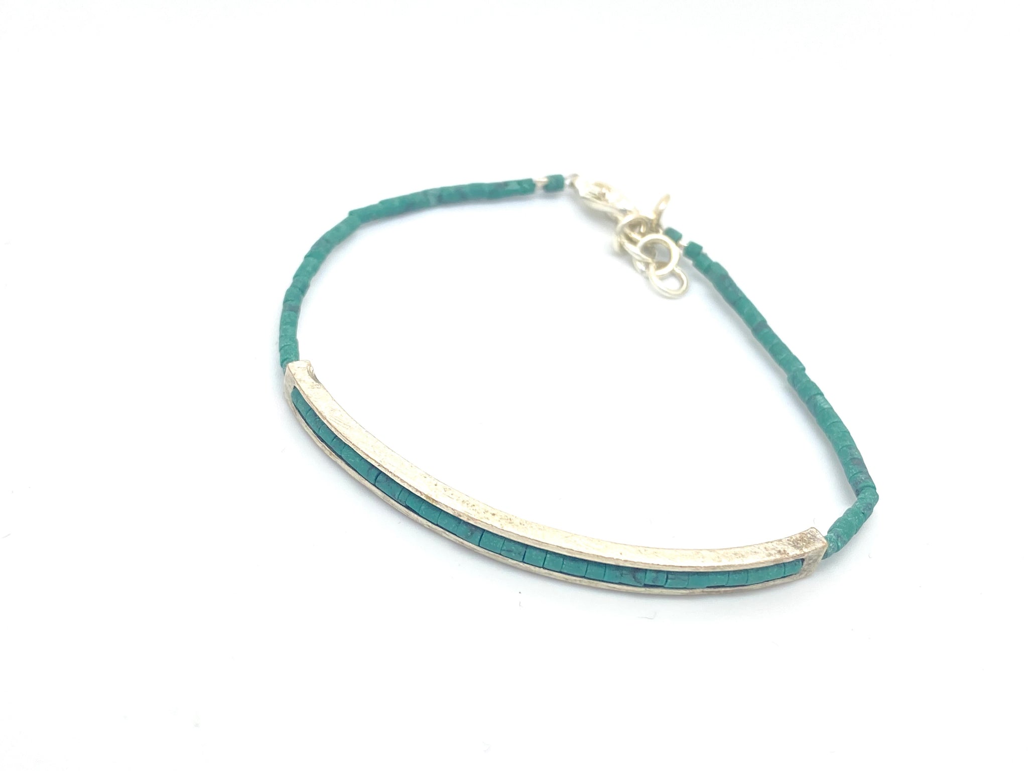 Petite Silver Hollow Bar Bracelets with Afghan Beads