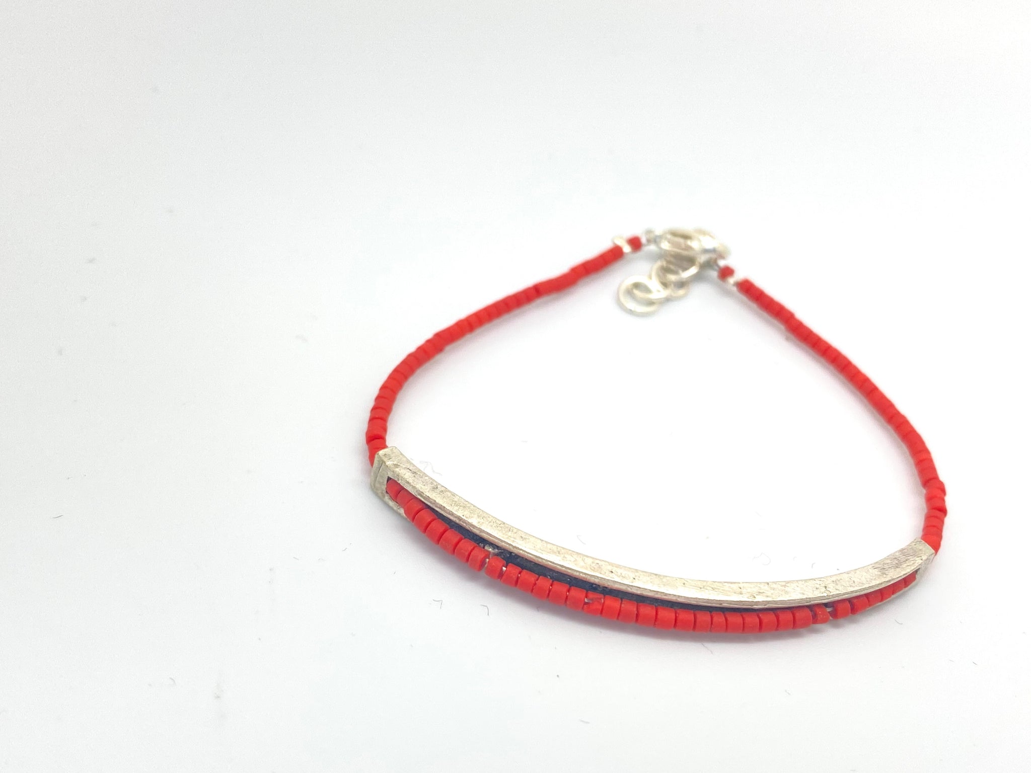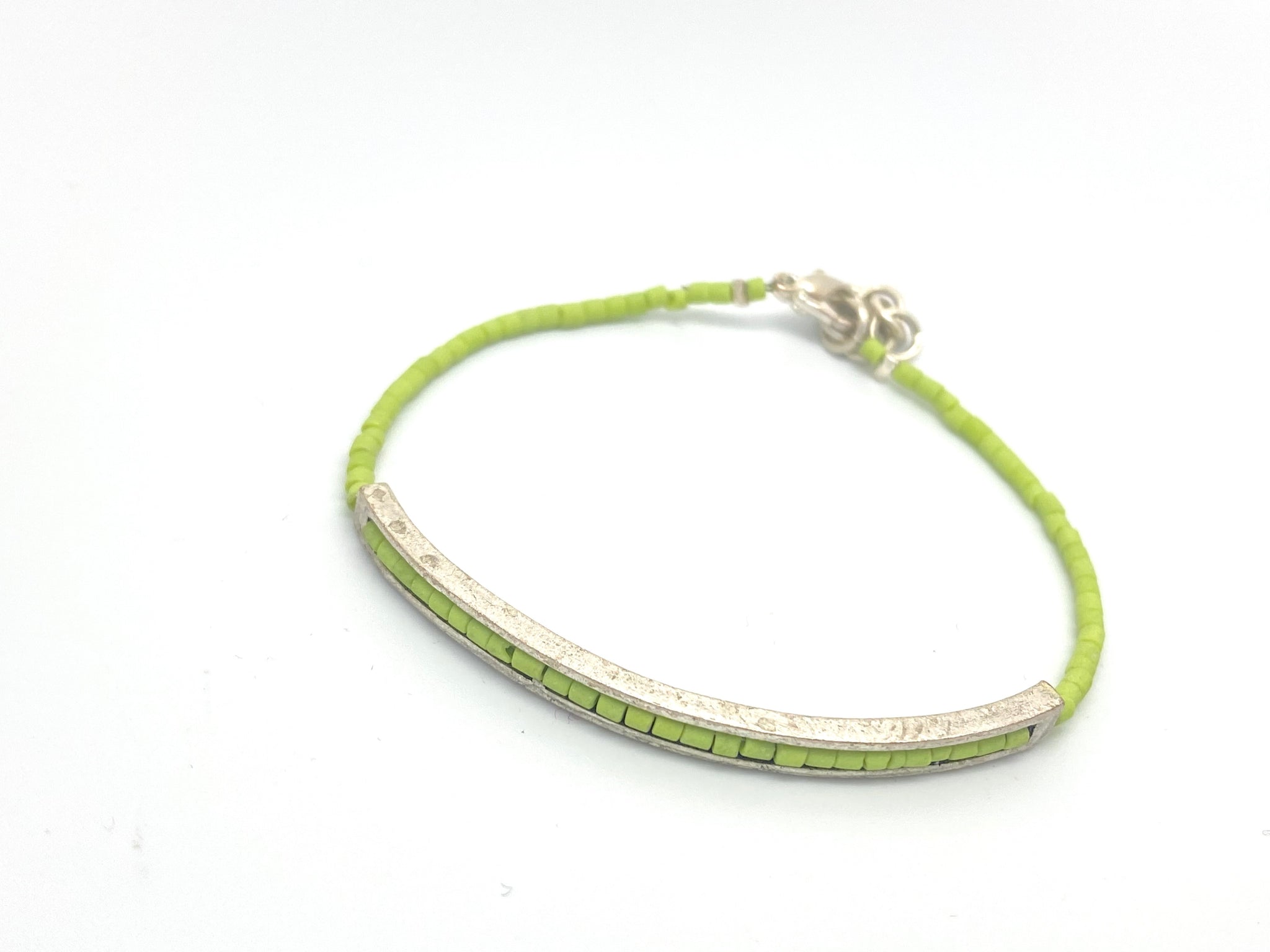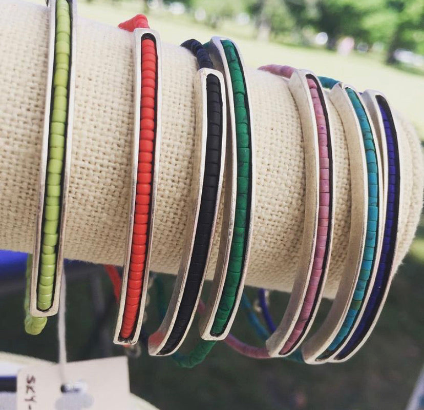 Petite Silver Hollow Bar Bracelets with Afghan Beads