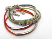 • Load image into Gallery viewer, Petite Silver Hollow Bar Bracelets with Afghan Beads