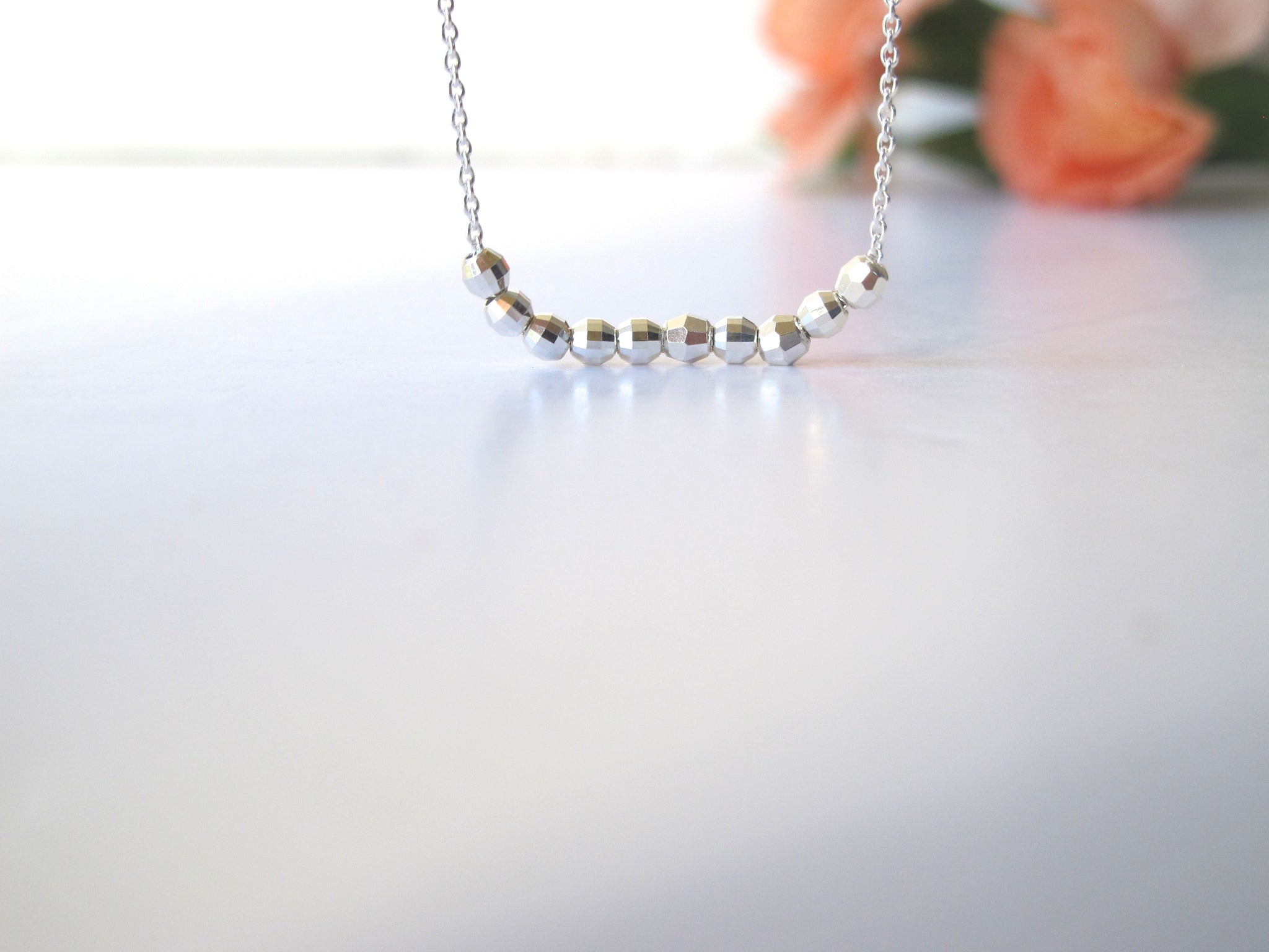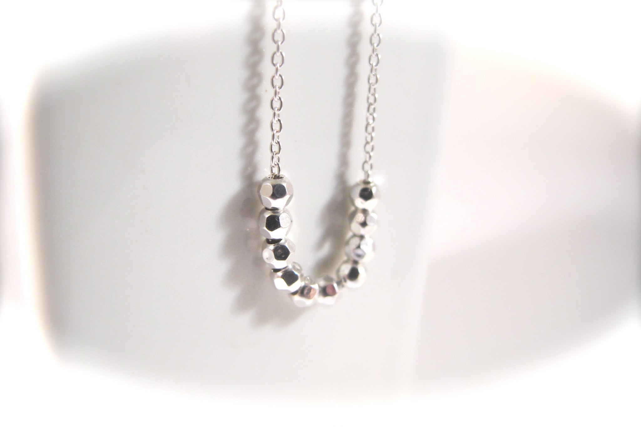 Sterling Silver Mirrored beads stranded on a fine Sterling Silver cable chain to make this pretty necklace.