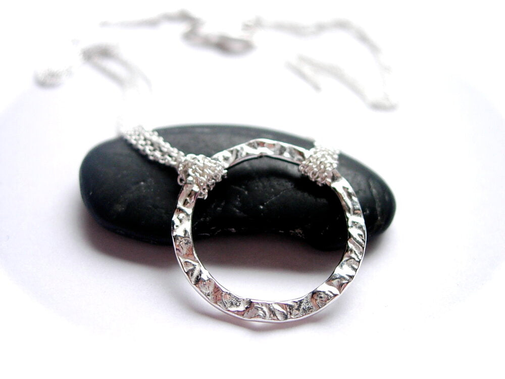 25mm hammered sterling silver disk is placed as a focal point for this lovely everyday and very comfortable necklace. Fine sterling silver cable chain is used in this piece . The total length is 16”+2” extender.